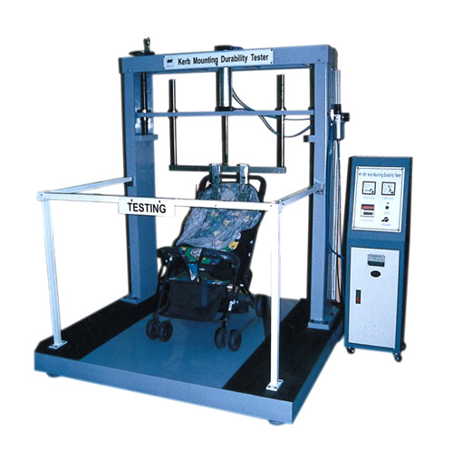 簡單說明:本機適用于手推式嬰兒車模擬超越障礙物時所作舉起下壓動作之耐用性測試,依據CNS測試方法為置模型嬰兒于車臺中,舉起時使車臺后輪離地150MM,下壓時使車臺前輪離地150MM,以每分鐘15±1次,并持續往測試3000次后,目視車臺有無損壞。達設定次數,并能自動停止操作,故可24小時操作而無須人員看守。