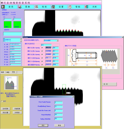 簡單說明:本公司開發的螺絲自動檢查機,采用目前最為先進的機器視覺技術,集成了功能強大的視覺處理軟件,并結合設計巧妙的機械傳動機構,實現了對多種規格的螺絲進行高速準確篩選。(檢測速度可達600個/分鐘) 該機軟件功能強大,易學易用,對于標準與非標準的螺絲只需簡單修改參數,便可以自動識別并測量尺寸,完成篩選。 該機機械部分設計巧妙,采用傳輸帶來取代以往的轉盤式結構。測量不同尺寸的螺絲不再需要更換轉盤,而是簡單通過絲杠調整傳輸帶的間距即可。
