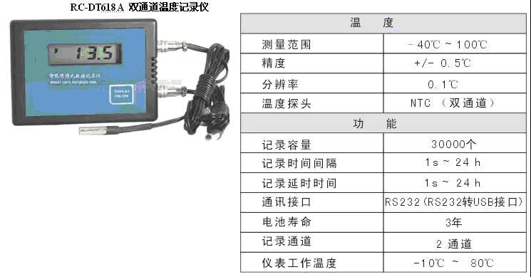 產品名稱:RC-DT618A 雙通道溫度記錄儀